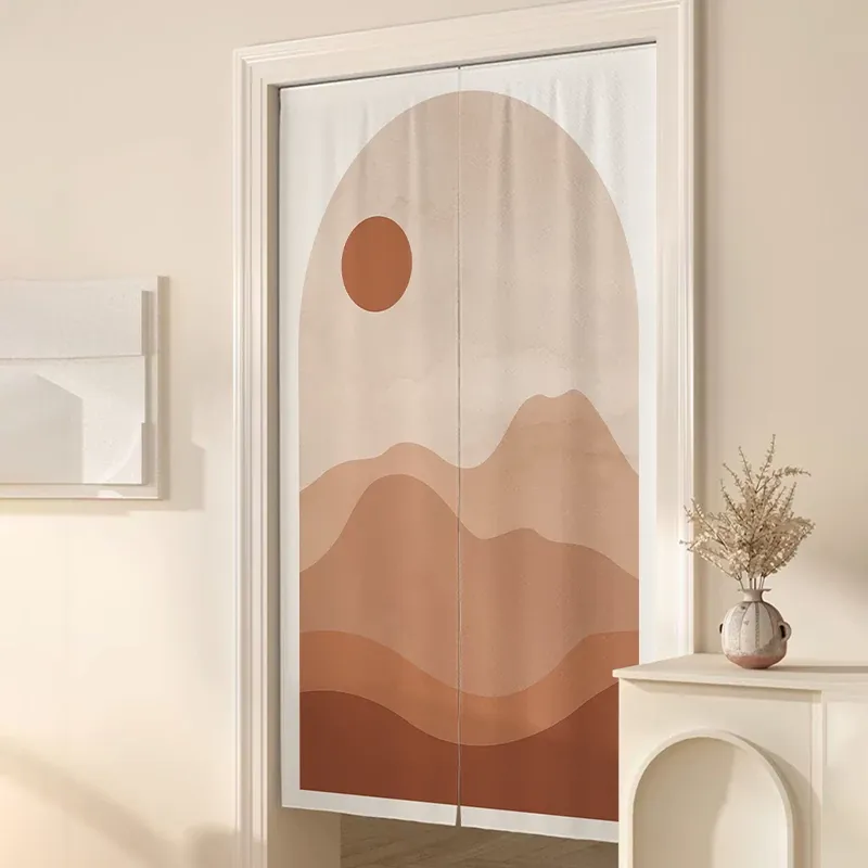 Japanese Wabi-Sabi Style Door Curtain - Elegant Half Curtain for Bedroom, Kitchen, Entryway, and Bathroom - No Drilling Required, Perfect for Privacy and Aesthetic Room Dividers