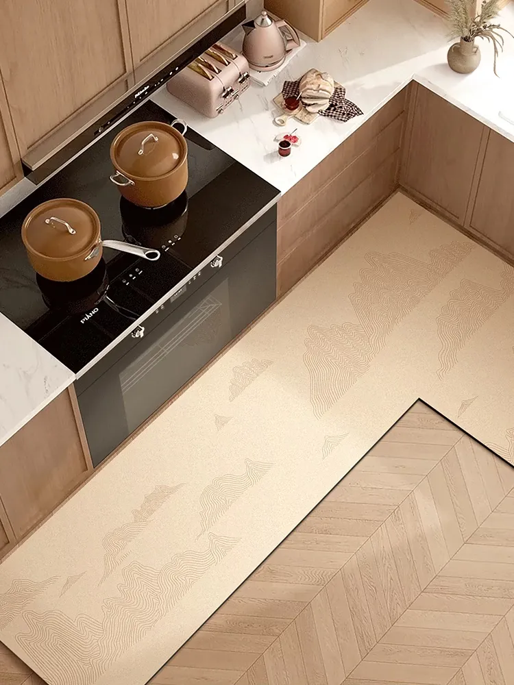 French Style Waterproof and Oil-Proof PVC Leather Kitchen Mat - Easy to Clean, Luxurious Home Essential for a Sophisticated Look and Comfort.