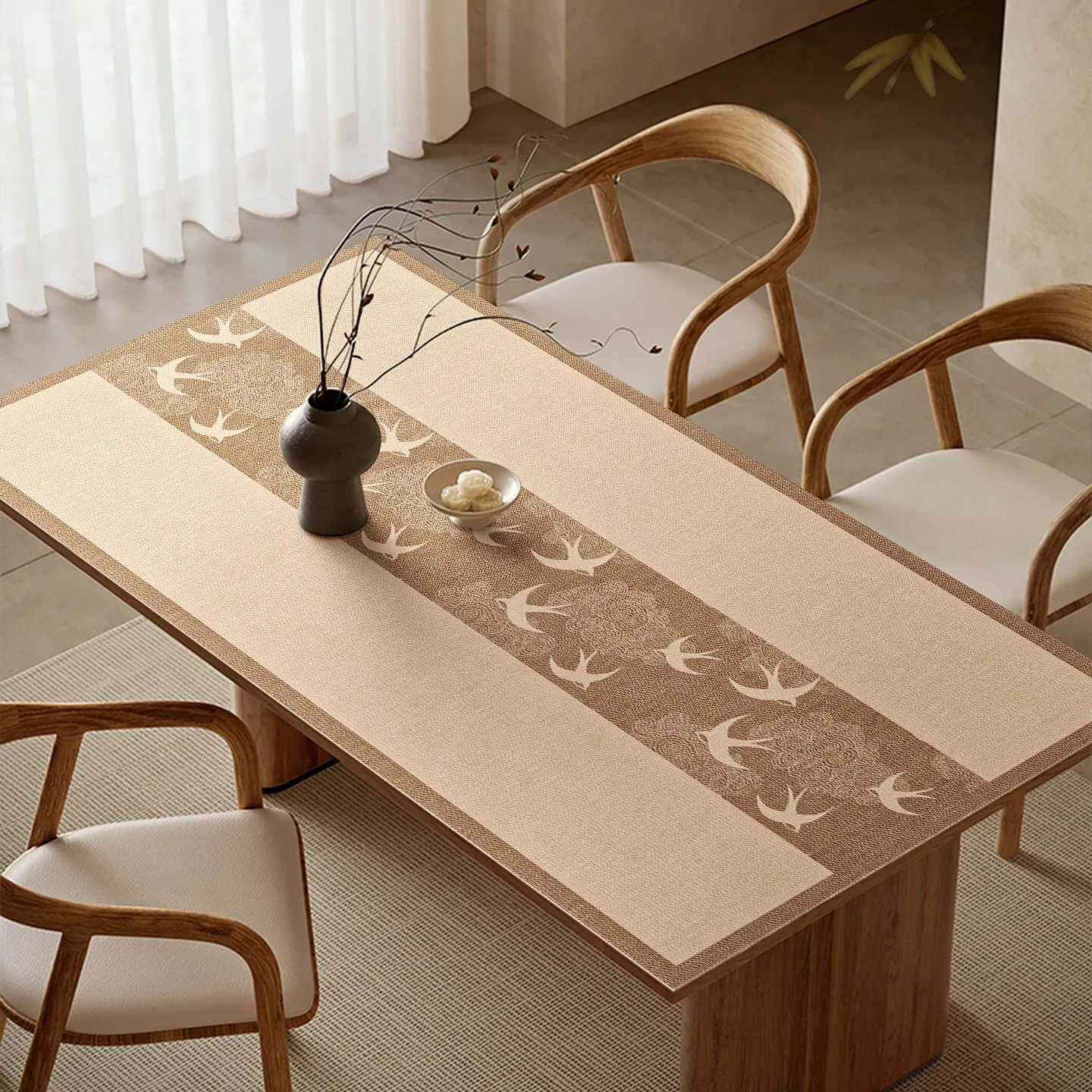 New Chinese Style Waterproof, Oil-Proof, and Heat-Resistant PVC Tablecloth - Stylish Leather Dining Table Mat, Coffee Table Protector, and Desk Cover for Modern Homes