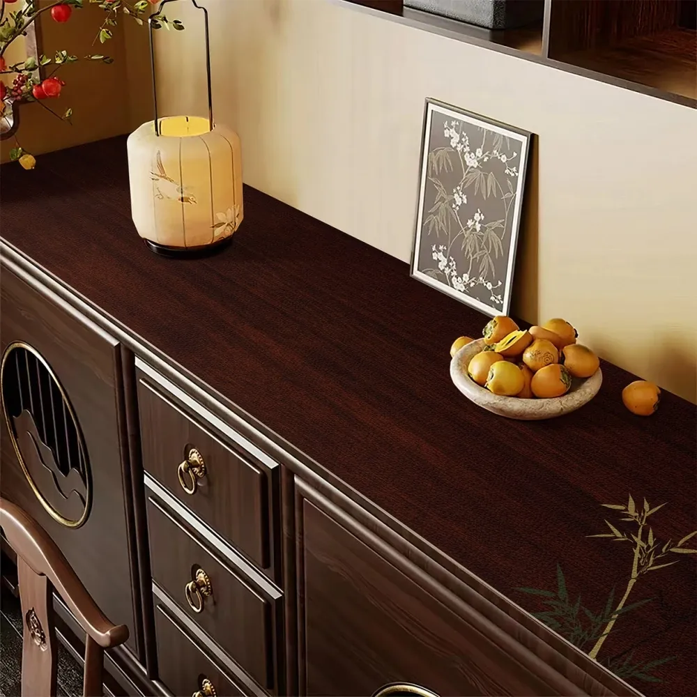 Wood Grain New Chinese Style Sideboard Tablecloth - PVC Leather Wipeable Table Protector Mat for TV Cabinet and Shoe Cabinet, Easy to Clean and Maintain