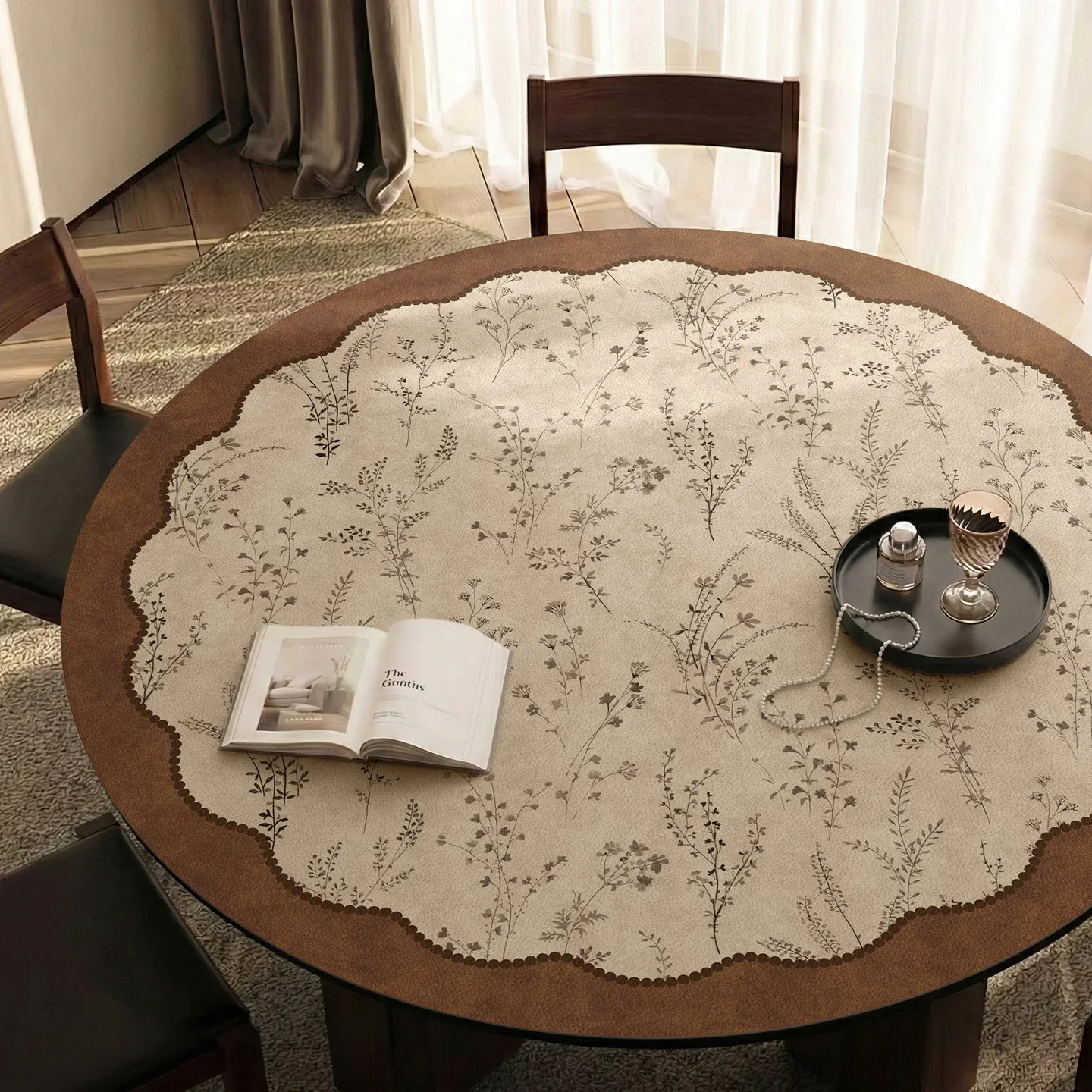 Waterproof & Oil-Resistant French Vintage Round Tablecloth – Easy-Clean Leather Round Dining Table Mat for Living Room & Coffee Table Surface Protection