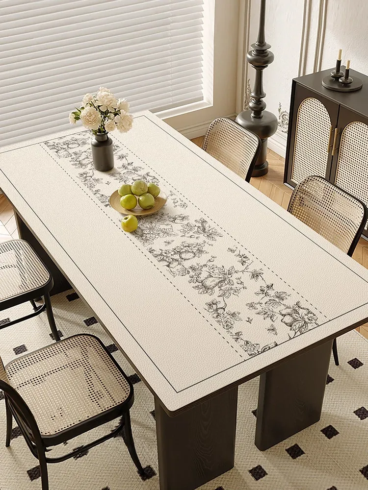 Elegant French-Style Luxury Dining Table Mat - Waterproof, Oil-Resistant, Easy-Clean PVC Leather Tablecloth - Heat-Insulating and Anti-Scald Design