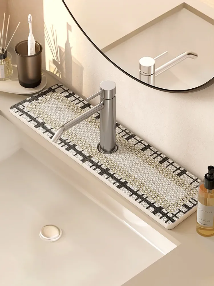 Home Faucet Absorbent Hard Diatom Mud Mat - Fast-Drying, Easy-Clean Narrow Drainage Pad for Sinks and Wash Basins