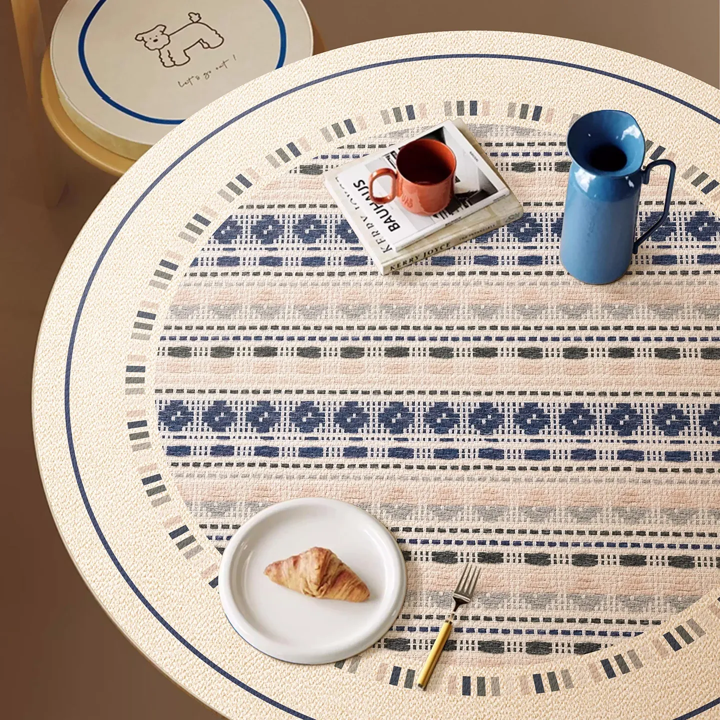Elegant Wabi-Sabi Style Round Tablecloth - Waterproof, Oil-Resistant, and Easy-Clean Luxury Leather Table Protector for Coffee Tables and Dining Tables