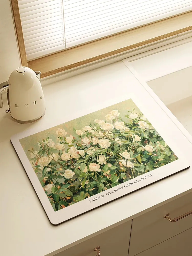キッチンカウンター用吸水マット - シリカゲル製、速乾・防水・耐熱で、食器や水栓周りをしっかりガード!汚れに強く、毎日の掃除も楽々。スタイリッシュなデザインで、キッチンをおしゃれに演出します!