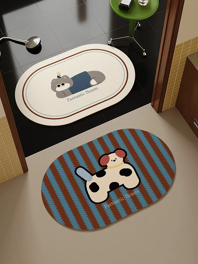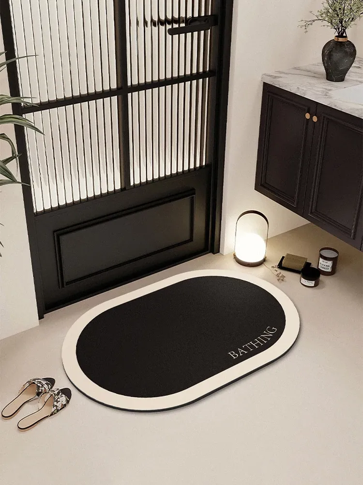 北欧スタイルの浴室用ソフトシリカゲルマット - 吸水速乾、滑り止め機能付きでトイレも安心!快適な足元を実現する衛生的なバスマット。