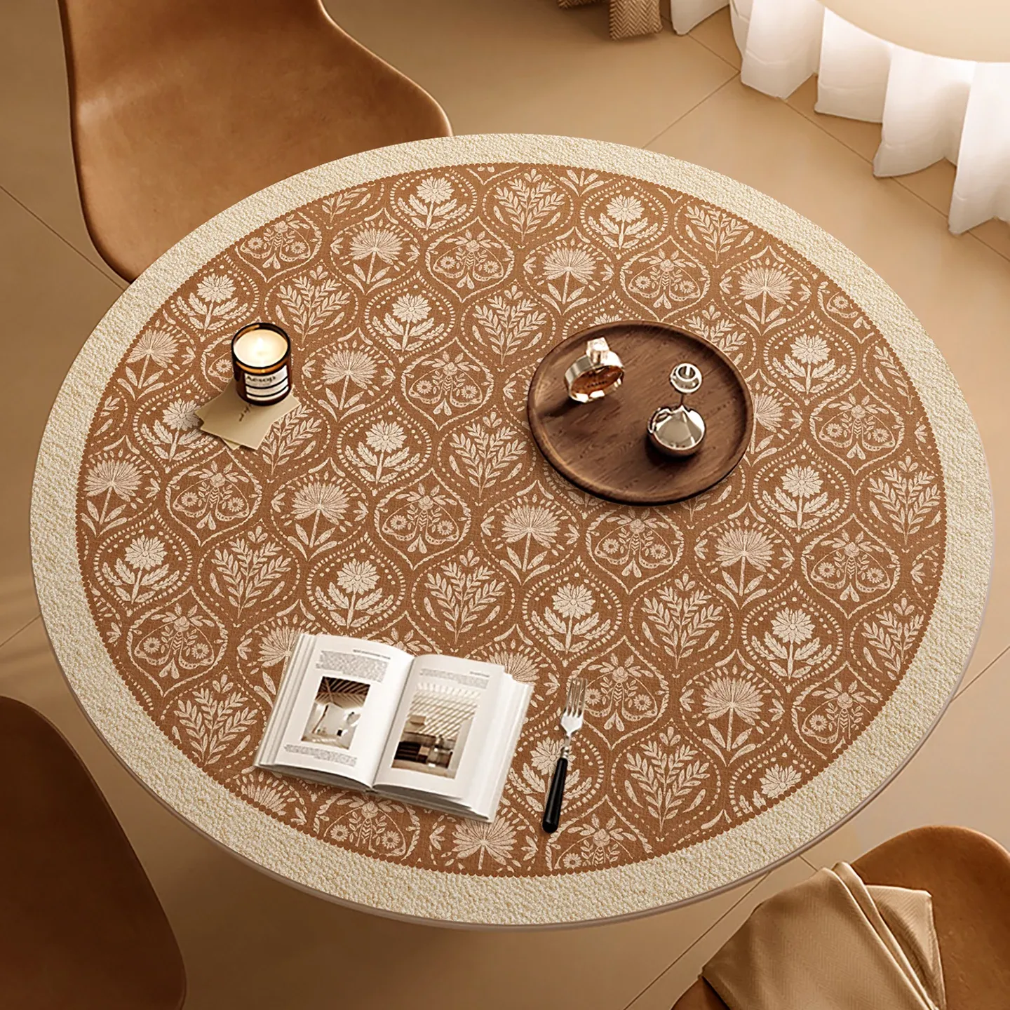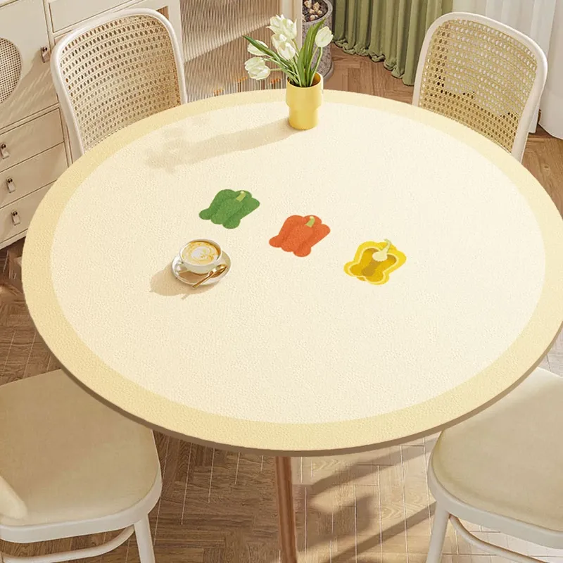 侘寂スタイルのテーブルクロス - お手入れ簡単な防水・防油・耐熱レザー製の円形ダイニングマット。茶卓やデスクにも最適で、スタイリッシュな空間を演出します!