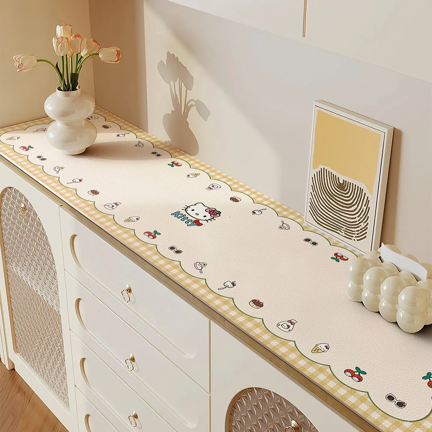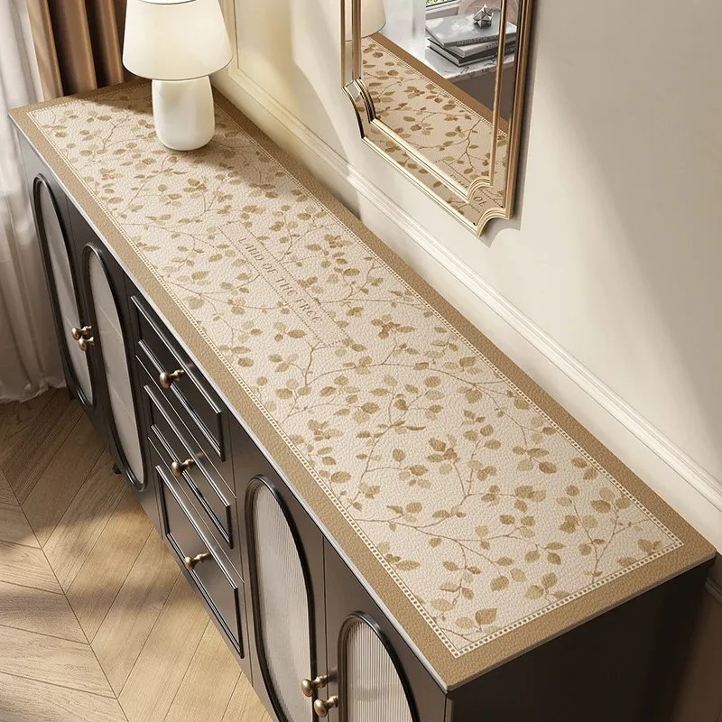高級感漂う軽奢仕様!防水・防油・洗浄不要のPVC製テレビキャビネットマット。熱にも強く、焦げ付き防止!食卓やサイドボードにも最適な美しいテーブルマット。あなたのインテリアを格上げします!