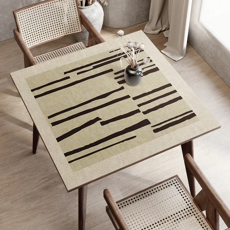 高級感あふれる免洗テーブルクロス - 防油・防水の軽やかなレザー製、和の侘び寂び風デザインのPVC製コーヒーテーブル用マット。おしゃれで機能的な空間を演出します!
