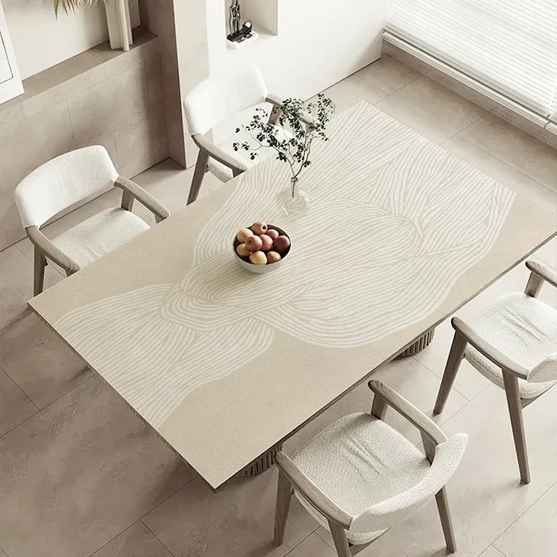 侘寂風の高級感あふれる防水・防油テーブルクロス!お手入れ簡単な小羊皮製、長方形のテーブルカバーや茶卓、書桌用のラウンドマットも揃っています。美しいデザインで、あなたの食卓を一層引き立てます!