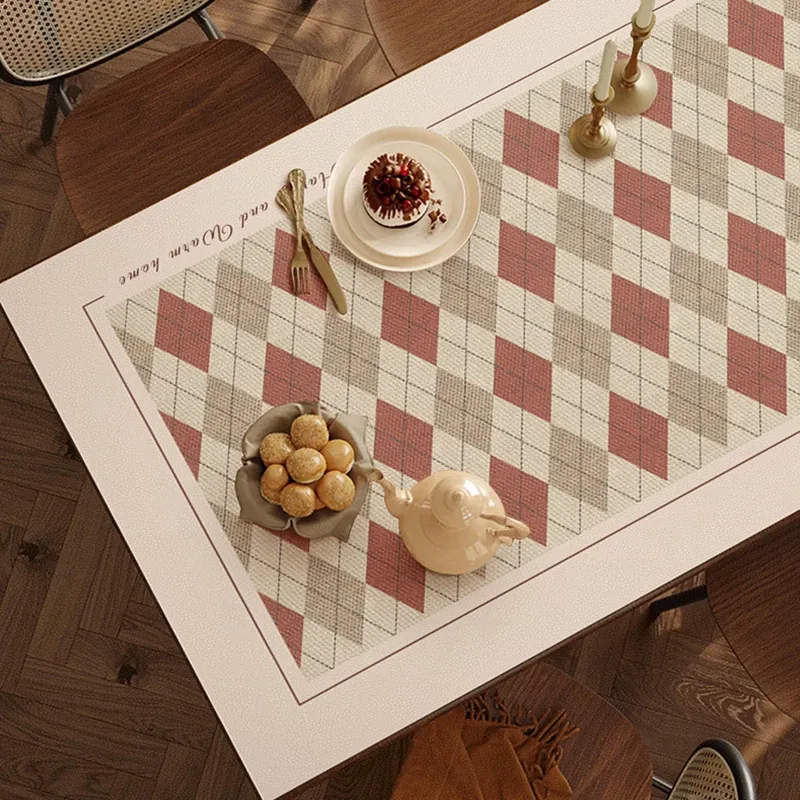 かわいいチェック柄の長方形テーブルクロス - 家庭用の食卓やテレビ台に最適!防水・防塵仕様で、靴箱にもぴったりなレザー風マット。おしゃれで機能的なアイテムで、インテリアを一新しましょう!