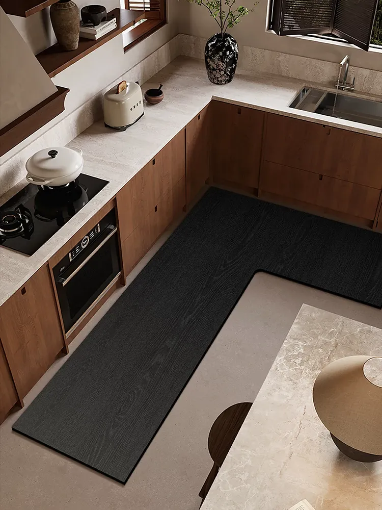 キッチン専用洗浄不要L型マット!シリカゲル素材で滑り止め・耐汚れ、速乾・吸水・吸油機能を備えた完璧なラグ。清潔で快適なキッチン空間を実現します!