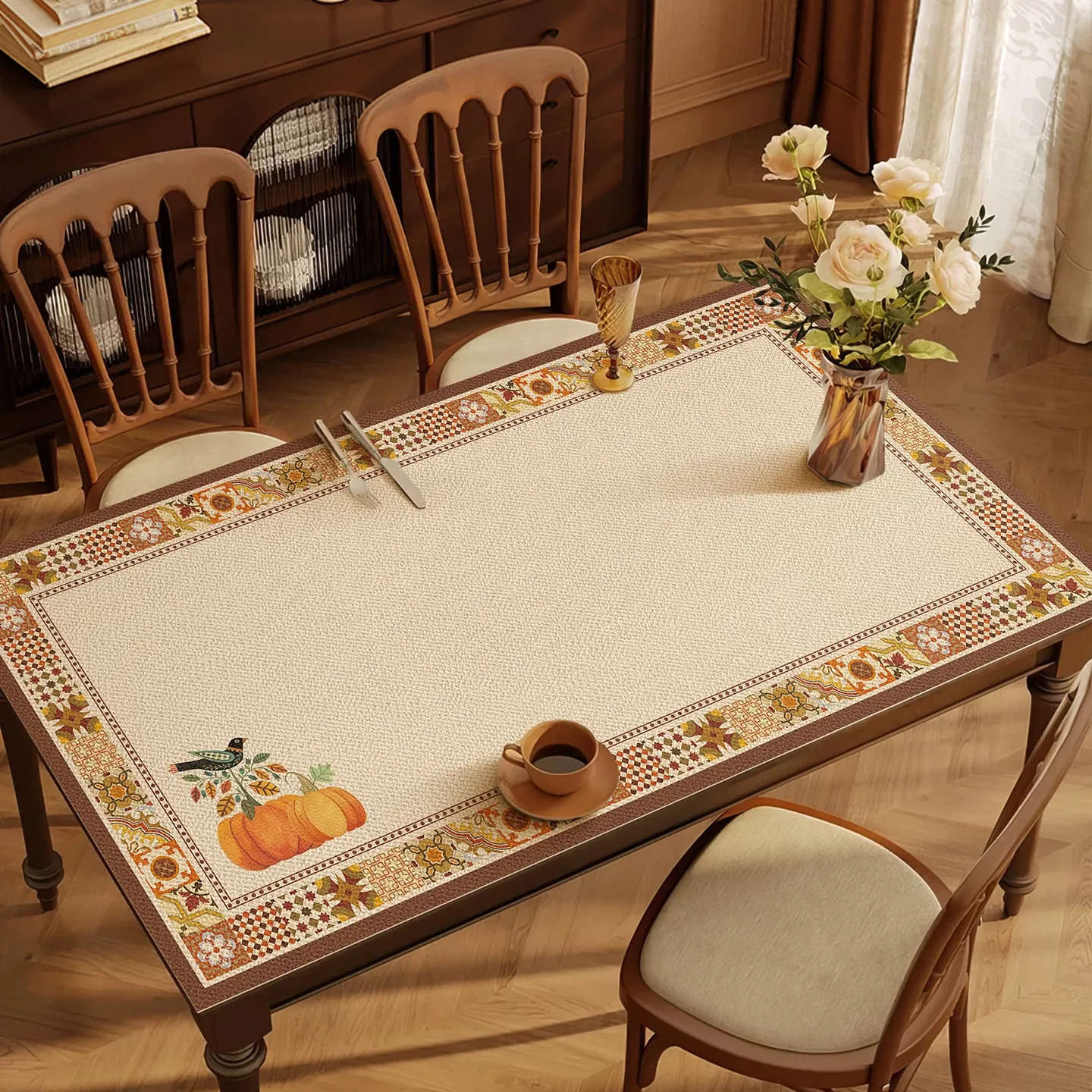 ヴィンテージスタイルの防水・防油・耐熱テーブルクロス!お手入れ簡単で、汚れやホコリから守ります。食卓やティーテーブルにぴったりのデザインで、おしゃれな空間を演出します。