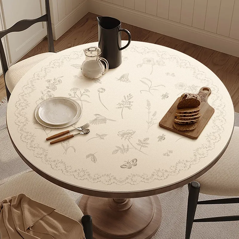 北欧風 丸型テーブルマット|洗濯不要・防水・防油の高級感あふれるテーブルクロス|熱から守る!おしゃれで実用的なダイニングテーブルやコーヒーテーブルに最適!